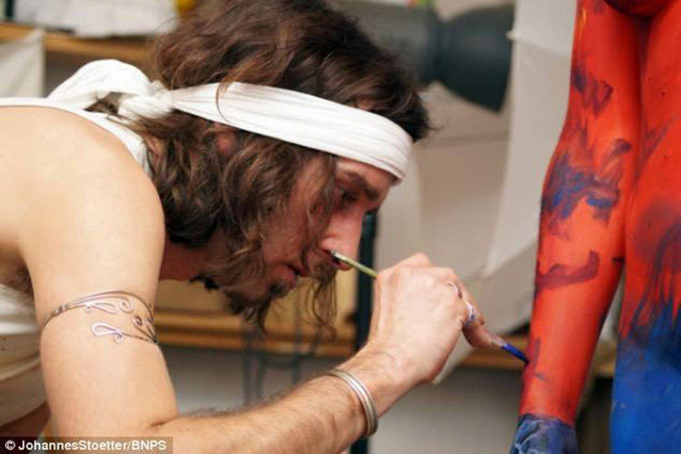 Dando los últimos retoques a la pintura antes de la sesión fotográfica