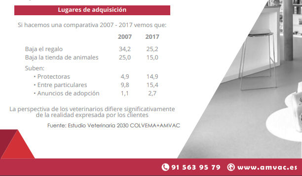 Según un estudio publicado por la Asociación de Veterinarios de animales de compañía (AMVAC) en la última década han bajado las compras de perros y otras mascotas en tiendas, y han aumentado las adopciones de perros y gatos provenientes de protectoras.