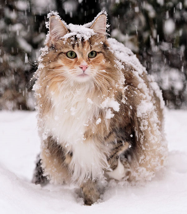 De esta mezcla surgieron gatos de pelo largo o semi largo, que se fueron adaptando al duro clima invernal noruego. Así, por selección natural, los ejemplares más fuertes y resistentes, con el pelo más denso y tupido fueron quienes mejor se adaptaron al difícil entorno nevado.