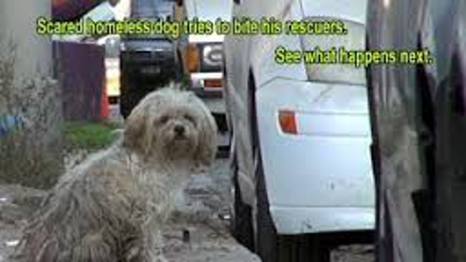 Tierna historia con final feliz, se trata de un perro sin hogar que se encuentran en malas condiciones. Nada mas verlo sus rescatadores intentan acercarse a él, pero al principio el perrito tiene miedo, incluso amaga con intentar morderles, se esconde debajo de los coches para que no lo cojan… Pero tras varios intentos finalmente consiguen acercarse a él y darle algo de comida y así ganarse su confianza.