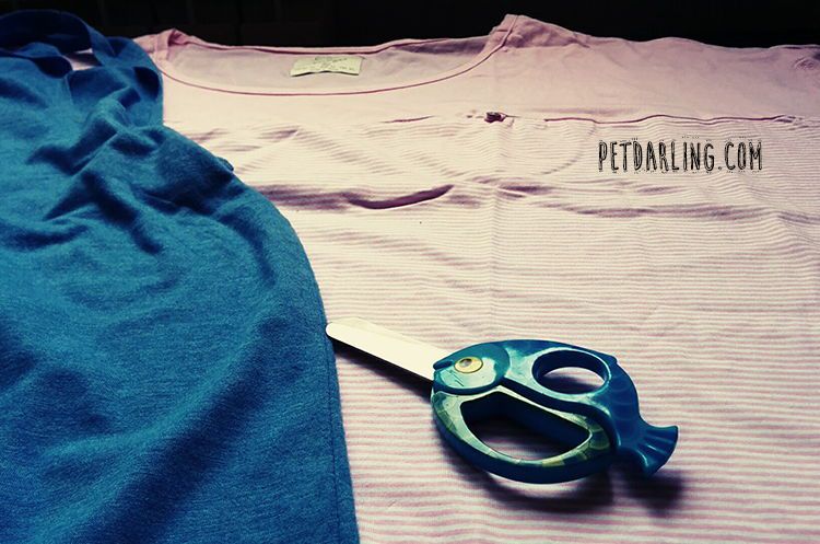 - Corta 9 tiras de camisetas para un mordedor para perros pequeños. Necesitarás más tiras si quieres un mordedor casero para perros grandes o medianos (18 tiras o incluso más, según tu gusto).