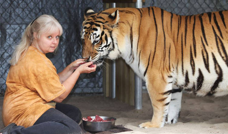 Janice da de comer a sus tigres 3 veces al día, siempre con sus propias manos.