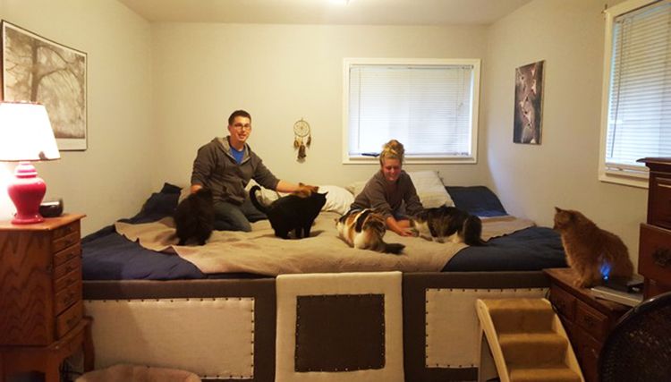 Pareja construye una cama gigante para dormir con 7 mascotas!
