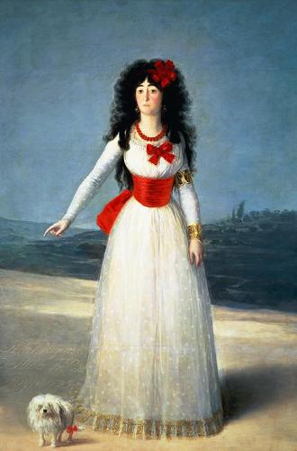 En España este también fue un perro de moda entre la nobleza en los siglos dieciséis a dieciocho, y por ejemplo el pintor Francisco de Goya hizo varios retratos en los que aparecen perros de este tipo en su versión mini, como acompañantes de la clase adinerada peninsular. En la foto anterior, te mostramos a la duquesa de Alba, retratada por Goya en 1795 posando con un perro tipo caniche enano.