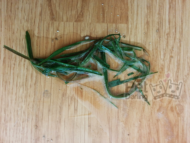 Esto seguramente también os haya pasado, más o menos media hora después de comer hierba, los perros vomitan un amasijo de hierbajos sin digerir donde podemos identificar perfectamente todas las briznas de hierba que se había zampado!.