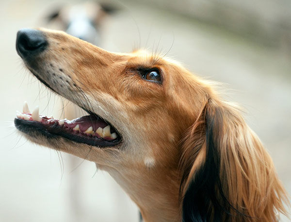 - Saluki o galgo persa, originario del medio Oriente, con penachos de pelo largo en sus orejas.